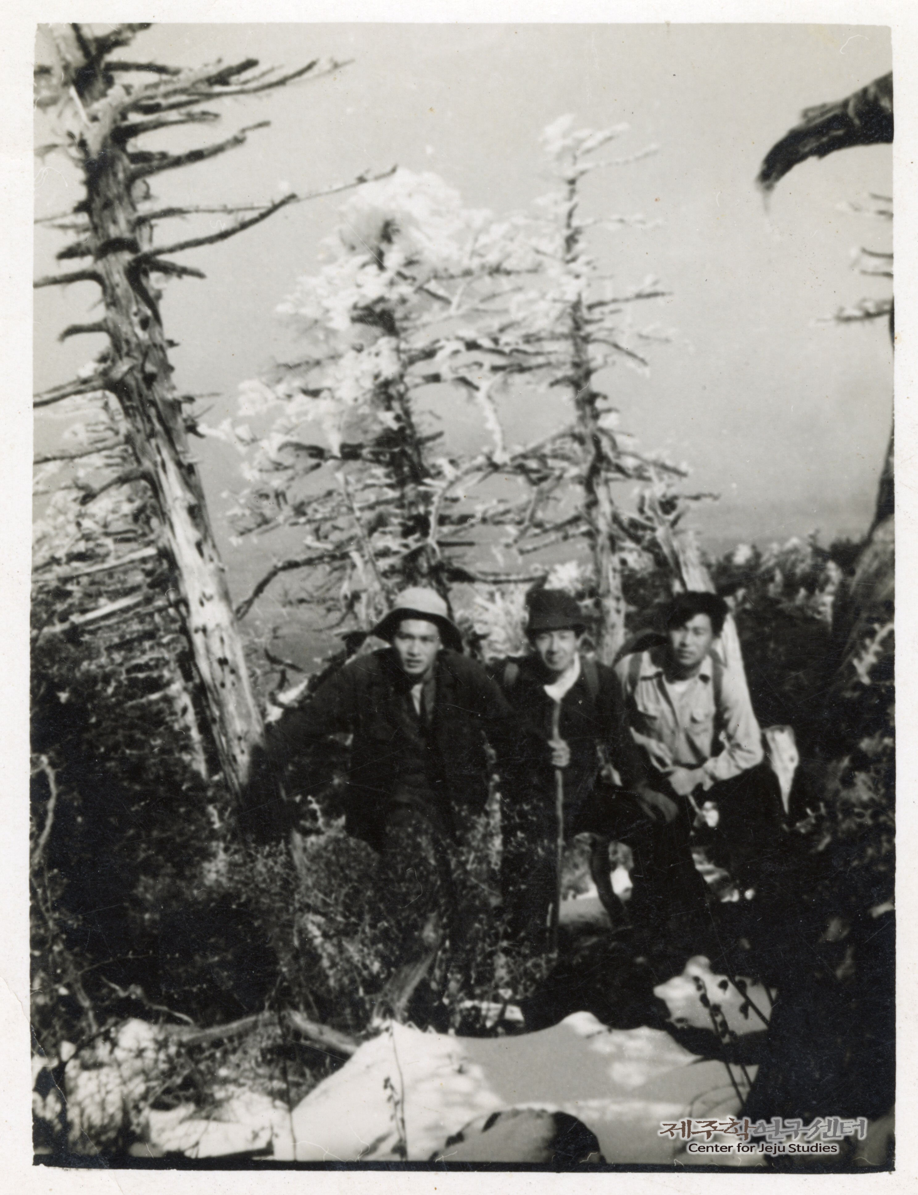 친구들과 한라산 등반 중 고사한 구상나무 앞에서