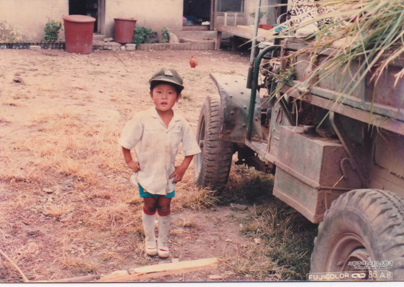 소장자 전경순 씨의 아들은 어릴 적부터 기계를 만지는 것을 좋아했다고 한다. 이날도 마당에 세워진 ‘딸딸이’(경운기를 개조한 차) 위에 올라타 놀고 있는 아들의 모습이 귀여워 사진을 찍었다고 한다. 특별하게도 이날 군 복무하던 작은아버지가 본가에 놀러왔는데 아들이 작은아버지가 쓰던 군모를 빌려 쓰고선 한껏 폼을 잡았다고 한다.
