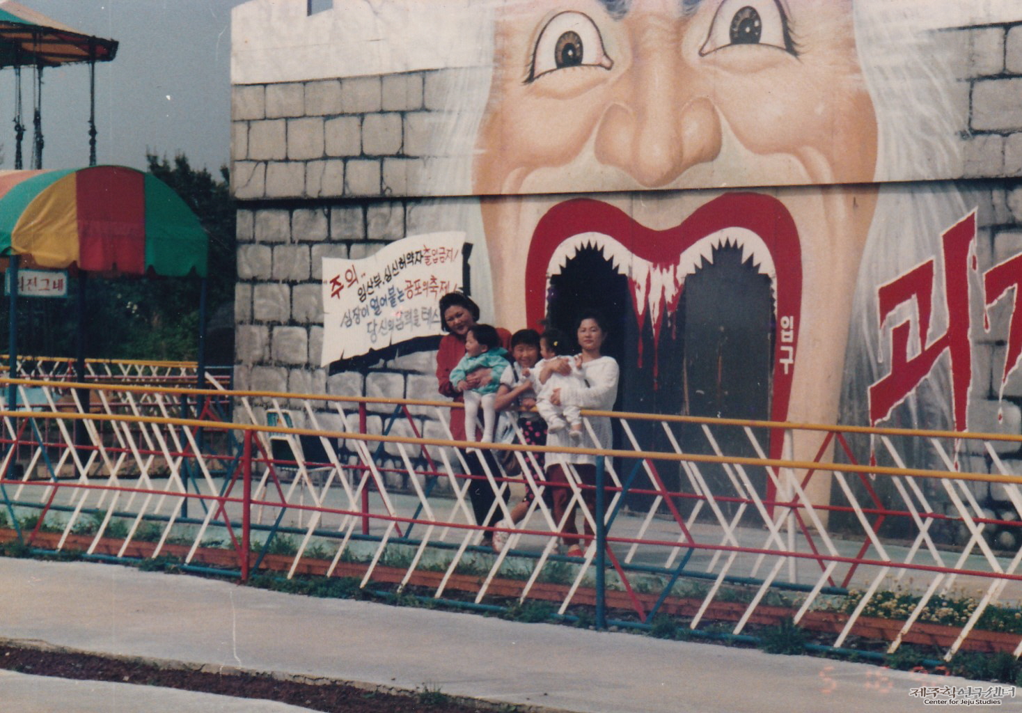 수산유원지 안에 보트장을 배경으로 박철성 씨가 딸을 안고 있는 모습이다. 이들 뒤편에는 저수지에 떠있는 보트와 오리배도 보인다. 한편 수산유원지는 1988~89년경 개장하여 2000년대 초반 폐장하기까지 제주도에 있는 휴양 시설이었다. 저수지를 조성하기 위해 추진한 사업은 농어촌 공사에서 진행한 국책사업으로 하귀, 구엄에 있는 논에 농수를 공급하기 위한 용도였다고 한다.