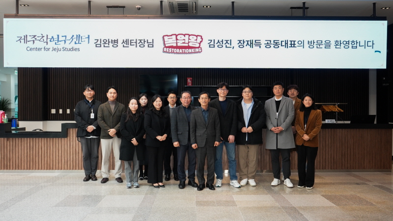 제주학연구센터(센터장 김완병)-제주콘텐츠진흥원(원장 강민부)-유튜버 복원왕(대표자 김성진, 장재득)은 '제주 지역 원형 콘텐츠의 복원과 활용'을 위한 업무 협약을 체결하였습니다.