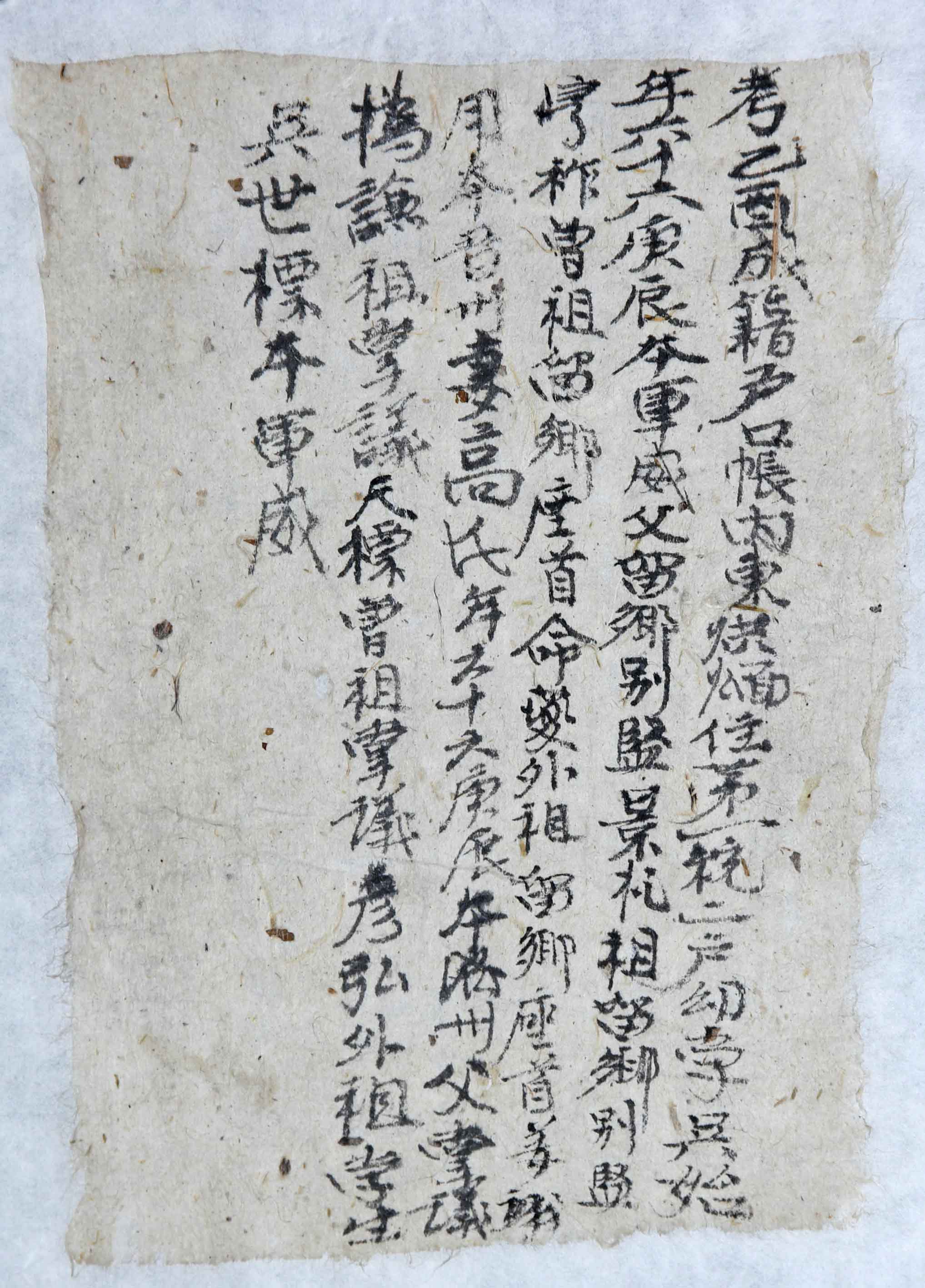 18. 考乙酉成籍戶口帳內東烘面住第一統二戶幼學吳始年六十六庚辰本軍威父留鄕別監景禮祖留鄕別監亨祚曾祖留鄕座首命夔外祖留鄕座首姜翊用本晉州妻高氏年六十六庚辰本濟州父掌議撝謙祖掌議天標曾祖掌議彦弘外祖學生吳世標本軍威.을유년에 만든 호구장의 기록이다. 동홍면의 제1통 2호에 거주하는 유학 오시 나이 66세 경진년 생 본관 군위. 아버지는 유향별감 경례, 할아버지는 유향별감 형조, 왕할아버지는 유향좌수 명기, 외할아버지는 유향좌수 강익용 본관 진주. 아내 고씨 나이 66세 경진년 생 본관 제주, 아버지 장의 휘겸, 할아버지 장의 천표, 왕할아버지 장의 언홍, 외할아버지 학생 오세표 본관 군위.*이 문서는 을유년에 작성한 호구성적에서 정의현(旌義縣) 동홍면에 거주하는 오시의 호구장을 보고 적은 문서로 본다. 문서의 양식은 준호구(準戶口)인데 발행한 관청의 직인이나 수결 등이 없는 것으로 보면, 개인이 필요하여 보고 적은 문서로 본다. 이 문서가 양국훈의 집안에서 나온 문서이므로 양국훈의 집안과 관련이 있다고 추정할 수는 있다. 그러나 이 문서를 작성한 사람이나 시기를 가늠할 사항이 없다, 이 양국훈 집안의 호구단자에서 오씨는 모두 세 사람이 보인다. 양제성의 아내인 오씨는 아버지가 유향별감 오광조며 기묘년(순조 19년 1819)에 출생하였다. 양백흥의 아우인 중흥의 아내 오씨는 정의현 토평리 오선도의 호적에서 옮겼는데, 경오년(고종 7년 1870)에 태어났다. 그리고 양백흥의 며느리 오씨는 본리(상창천리) 오영방의 오적에서 옮겼고, 계미년(고종 20년 1883)에 태어났다. 위 세 사람 모두가 동홍면에 거주하는 오시와는 관련이 없다. 양제성의 아내가 태어난 1819년 이후의 을유년은 1825년(순조 25년)과 1885년(고종 22년)이 있다. 그 다음의 을유년은 1945년이다. 동홍면에 살았던 오시를 확인할 수 있을까?