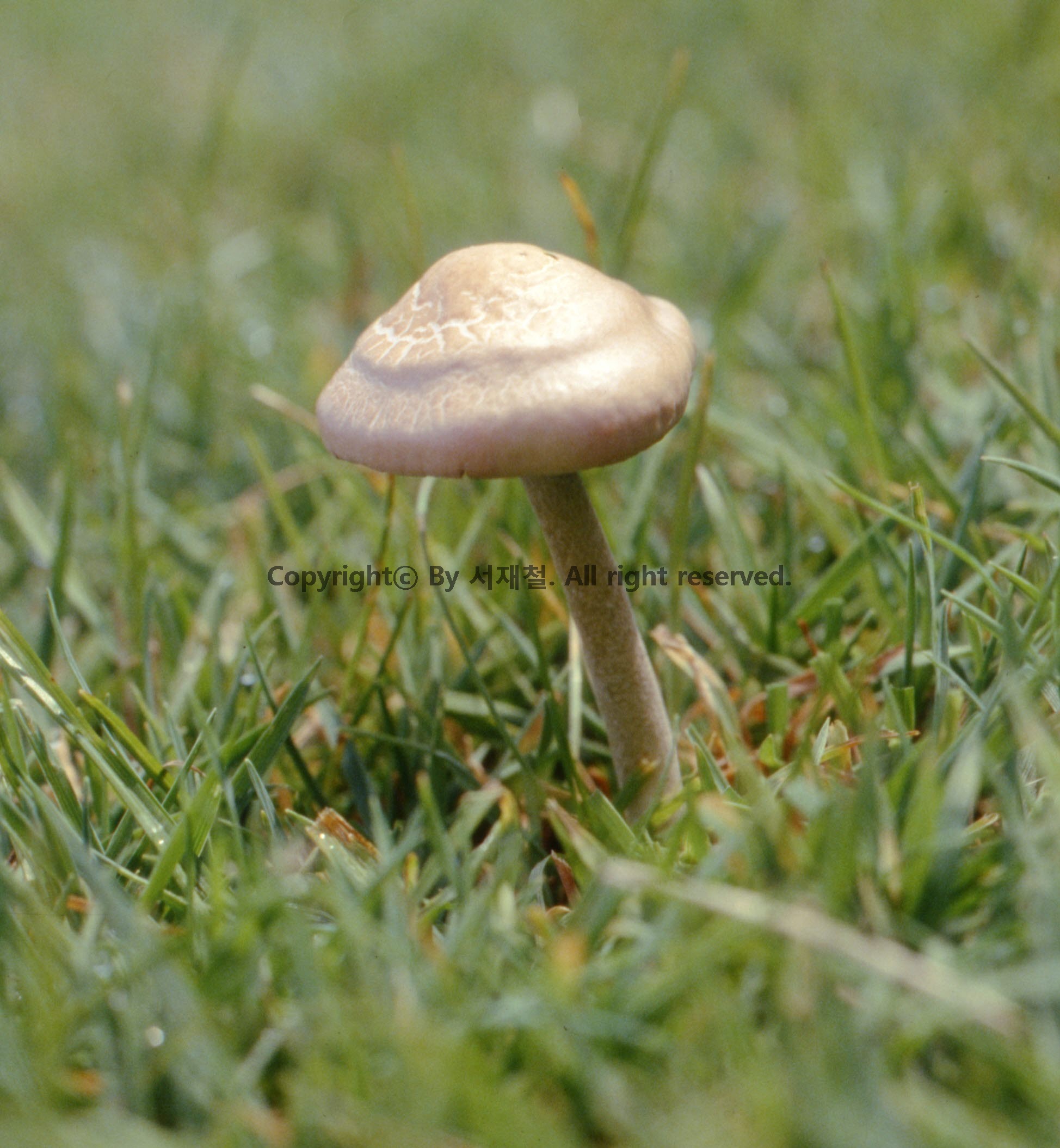 여름부터 가을 사이에 소나무 밭 땅 위에서 황색의 버섯이 한두 개씩 난다. 팡이갓은 처음에는 호빵 모양이다가 나중에는 조금 넓고 평평한 모양으로 된다. 겉은 잔털로 덮여 있으며 황색 내지 진한 황색이나 가운데는 어두운 색이다.