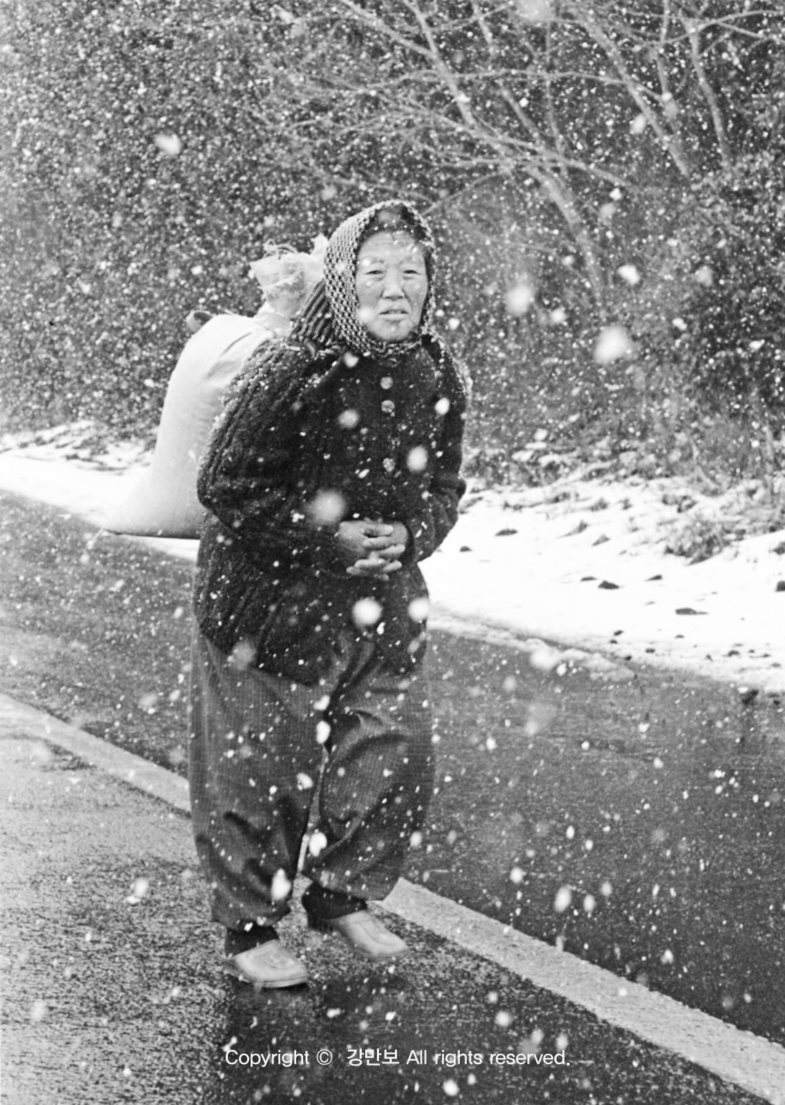 쌀 포대(자루)를 등에 지고 가는 아낙네