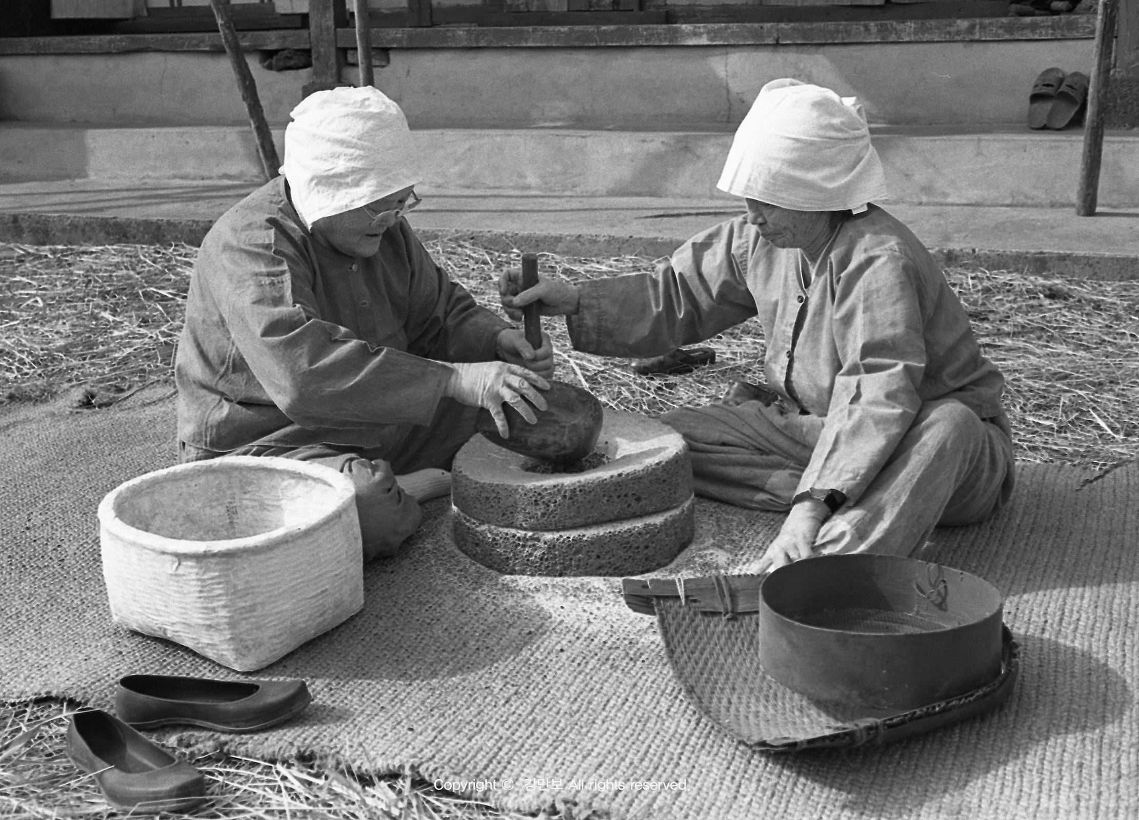 맷돌을 이용하여 가루를 낸 후 떡을 만들어 먹었다,