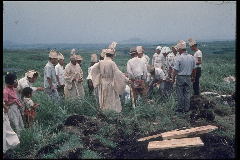 * 개요 : 상주들과 친지들이 하관을 지켜보고 있다. 어떤 심정으로 바라보고 있을까. 어머니에 대한 고마움과 미안함을 새기며 어머니의 명복을 빌고 있을 게다. 저 멀리 오름들과 들판이 장지를 포근히 감싸주고 있는 듯하다.
