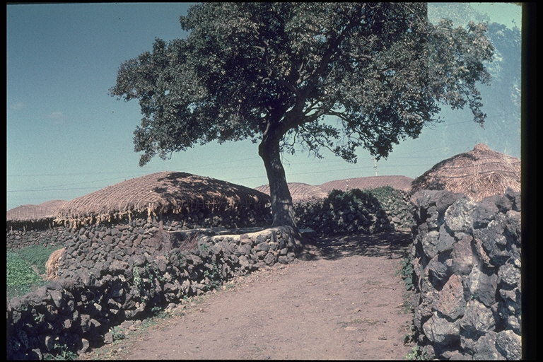 * 개요 : 제주 마을에는 올레길 입구나 마을 중심부에 주민들이 모여 쉴 수 있는 정자와 같은 댓돌이 있었다. 커다란 폭낭(팽나무) 아래 돌을 쌓아 시멘트로 평평하게 단장한 댓돌은 여름철 무더위가 심할 때 더위를 식힐 수 있는 마을 주민들의 안성맞춤 휴식공간으로 쉼터의 장이자 대화의 공간이었다. 마을 주민들은 마을이나 집안의 크고 작은 일들을 이 댓돌 소통 공간에서 서로 주고받으며 마을 공동체적 생활을 만들기도 했다. 돌담과 나지막한 초가집과 ‘눌’이 쌓여 있는 마을 모습은 농가의 정겨운 풍경을 만들고 있다.