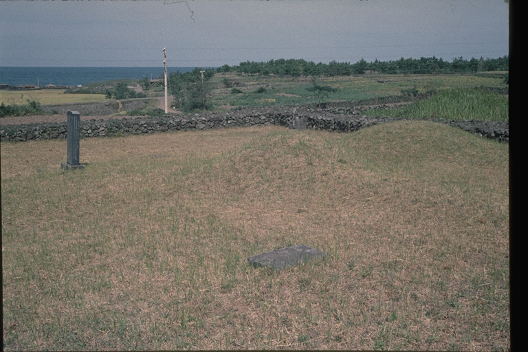 * 개요 : 이호동의 묘지 전경이다. 주변에 또 다른 묘가 있고 밭들과 소나무 밭, 바다가 보인다. 산담이 넓게 둘러 싸여 있지만 개개의 묘 주변에 산담이 없어서 이호동의 어느 문중묘인 것 같다. 문중 사람들이 돌아가시면 차례대로 묏자리를 마련하여 봉분을 만든다. 비석은 당시에 곧 세워진 것처럼 깔끔하게 단장되어 있다.