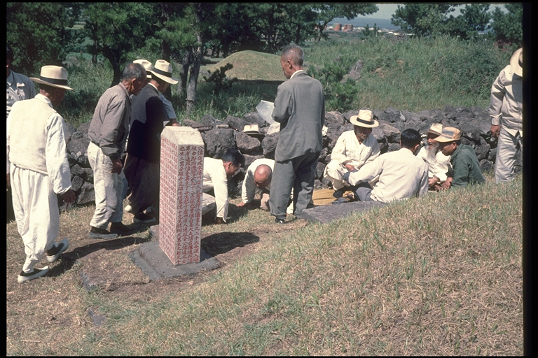 * 개요 : 1971년 추석 전에 양천허씨 문중의 사람들이 묘의 비석을 세우고 묘제를 행하고 있다. 허씨 문중묘는 소나무밭이 우거진 ‘서운당’이라는 도남동에 있었다. 중절모를 쓰고 흰 한복을 입은 노년층 남자들이 모여 이야기를 나누고 친척들이 상견례를 행하고 있다. 이후 허씨 문중묘는 해안동으로 이전하였고, 현재 이곳은 주택과 아파트, 상가가 빽빽이 들어서서 도시화가 되어 있다.