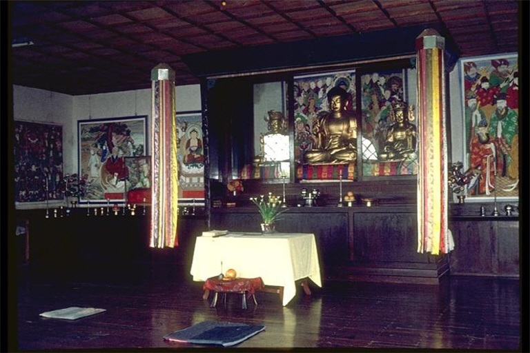 * 개요 : 한라산 관음사(현 보현사) 법당 내부 전경이다. 중앙 불단 가운데에 아미타불이 모셔져 있고 좌측과 우측에 협시보살인 관세음보살과 대세지보살이 봉안되어 있다. 왼쪽 벽에는 산신탱화와 약사여래불탱화, 오른쪽 벽에는 지장탱화가 봉안되었다.