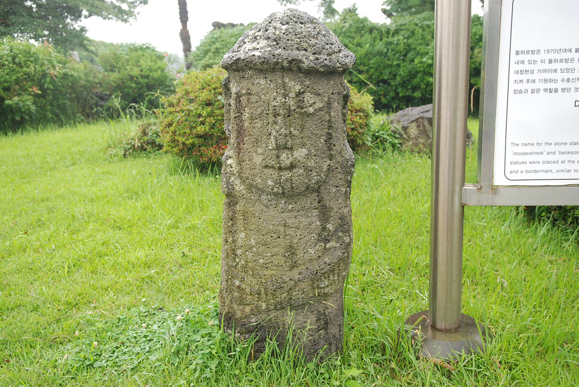 동문 밖에 세워져 있었던 것으로 도로개설과 지형변경으로 지금의 위치로 옮겨졌던 것으로 보인다. 모습은 모자를 쓰고 얼굴은 똑바로 앞을 보고 있으며, 손은 배 부위에서 왼손이 올라가고 오른손은 내려가게 표현되어 있다. 얼굴 뒷면에는 조각을 하다가 실패한 흔적이 확인된다.