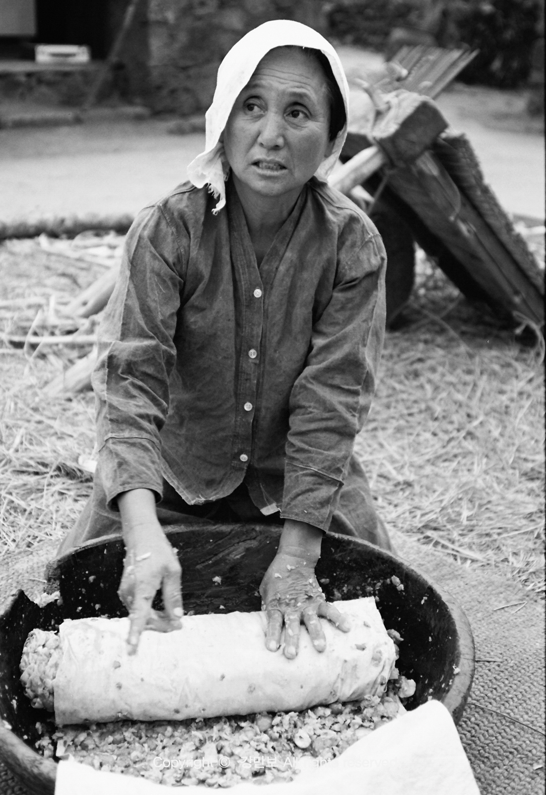 낭 도구리에서 감을 으깨어 감물을 내어서 들이기
