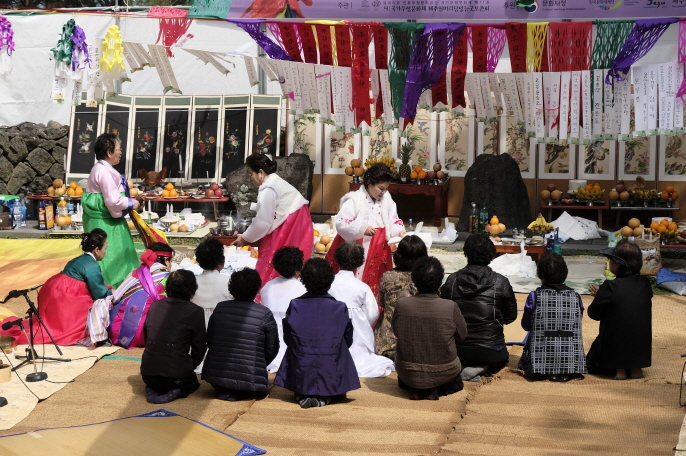 영등굿은 해마다 음력 2월 초하루와 열나흘 사이에 제주도 해안가 마을의 당에서 영등신을 맞이하여 풍어 및 해상안전과 해녀들의 채취물인 소라‧전복‧미역 등의 풍성을 기원하는 굿이다. 주로 해녀 및 어업, 선박업자의 부녀자들을 중심으로 연행되는 영등굿은 봄을 맞는 문턱에서 행해지는 계절제로서의 의미가 있다. 영등굿은 내방신으로서 풍우신, 어업신, 해신, 해산물증식신 등으로 관념된다. 신명은 ‘영등’ 또는 ‘영등할망’이라 하고, 제명은 영등굿이라 한다. 굿에서는 ‘영등하르바님, 영등할마님, 영등 좌수(座首), 영등 벨감(別監), 영등 호장(戶長)’ 등 여러 관직명이 붙어 나와 영등신이 관속을 거느리고 오는 것으로 되어 있고, 제명도 마을에 따라 ‘영등맞이’, ‘영등손맞이’, ‘영등제’ 등으로 불려진다. 영등굿 신화로는 외눈박이나라설과 강남천자국설 두 가지가 전해지고 있다. “영등할망은 2월 초하루에 강남천자국 또는 외눈배기섬에서 구좌읍 우도로 제주도에 들어와서 바닷가를 돌면서 미역씨, 전복씨, 소라씨, 천초씨 등을 뿌려주어 해녀채취물을 풍성하게 해주고 14일에 다시 우도를 거쳐 본국으로 돌아간다.”는 이야기이다. 이 신앙은 제주도 뿐 아니라 한반도 일대에 분포하며, 그 신명은 ‘영등할만네·영등할맘·영등할마니·영등할마시·영등바람·풍신할만네·영등마고할마니’ 등으로 불리고 있으며 주로 풍신(風神)으로 신앙한다고 전해진다.