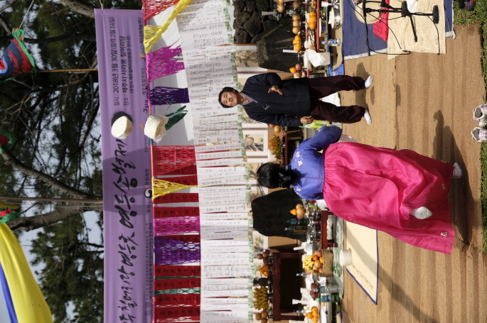 양승건 심방과 윤미란 심방이 나까시리 놀림 제차를 하는 모습이다.