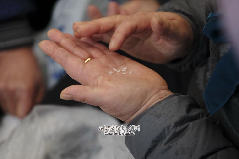 송당리 신과세제(2018년) 심방이 제비점을 보고 있는 모습