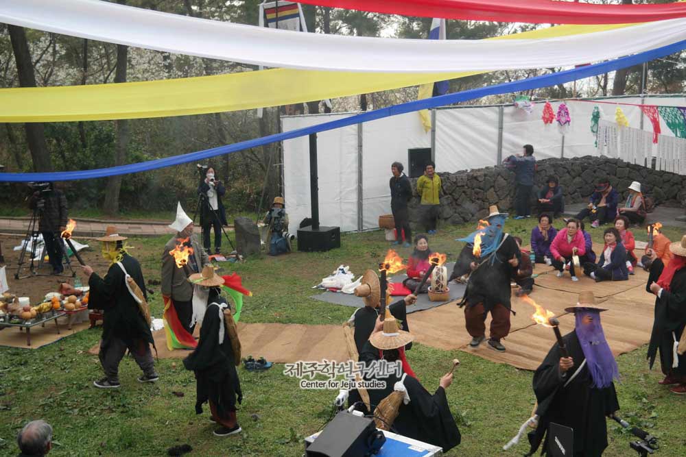 칠머리당 영등송별제(2018년) 영감놀이 제차 중 영감청함을 하고 있는 모습
