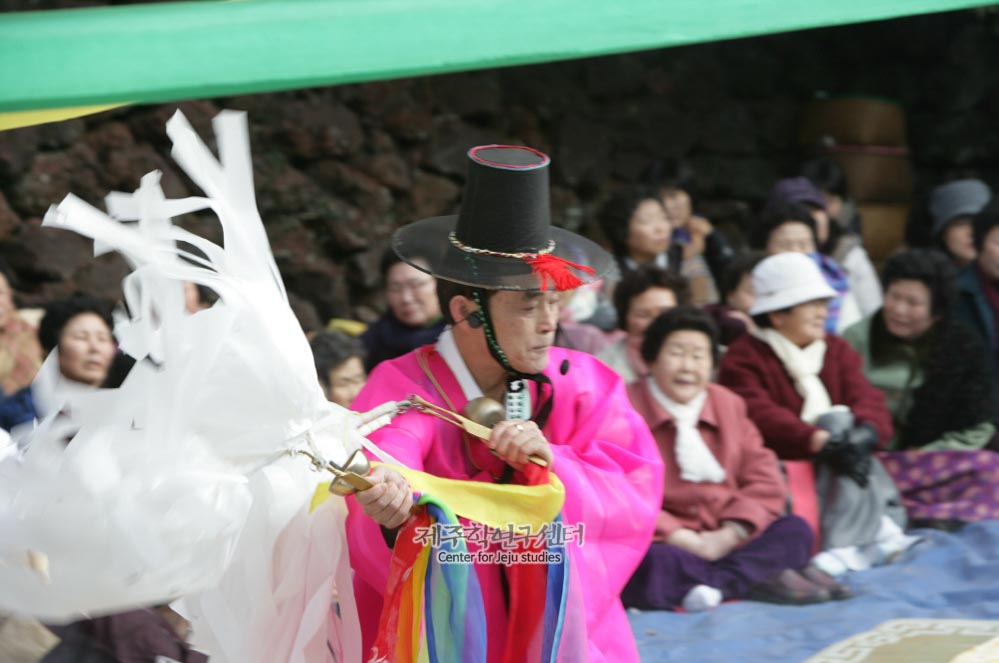 송당리 본향 웃손당 신과세제(2008년) 정태진 심방이 초감제 제차를 하는 모습