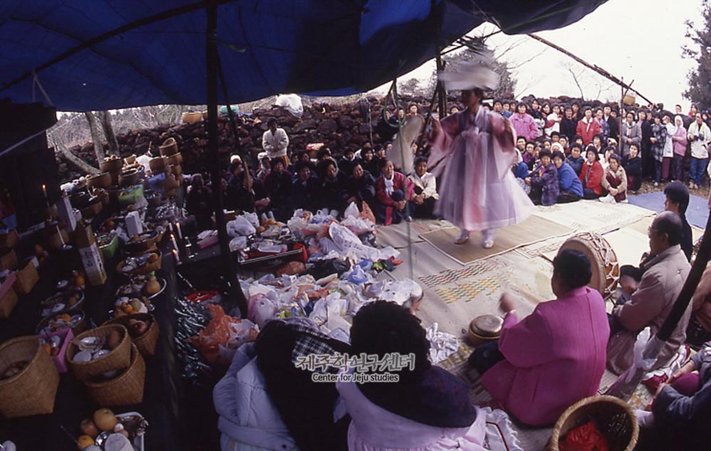 송당리 본향 웃손당 당오름 백주할망당 신과세제- 문성남 심방이 초감제 제차를 하는 모습