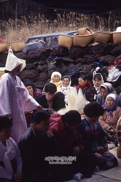 송당리 본향 웃손당 당오름 백주할망당 신과세제- 심방이 새다림 제차를 하는 모습