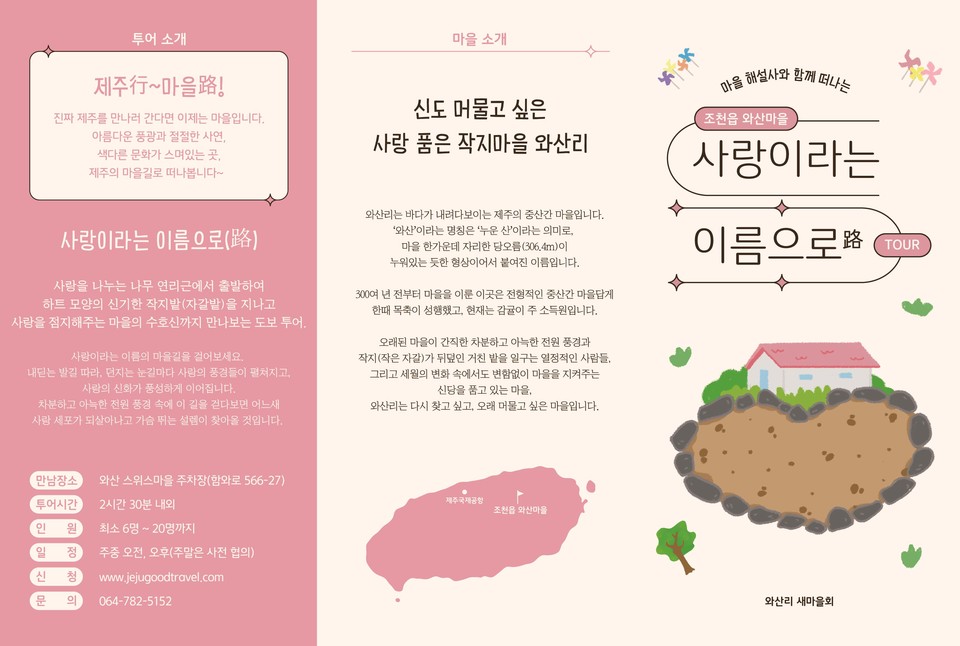 제주시가 ‘관광자원화 사업’을 통해 와산리, 상귀리, 조천리 등 3개 마을의 여행 프로그램 개발을 완료하고 새로운 마을 여행 상품을 본격 운영한다.