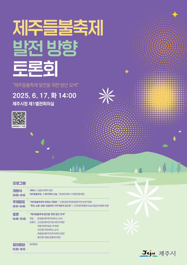 제주시 관계자는 "제주들불축제 미래를 준비하는 토론회에 축제에 관심있는 시민들의 많은 참여와 축제 발전을 위한 소중한 의견을 부탁드린다"며 "토론회에서 나온 의견들을 바탕으로 디지털 기술을 적극 활용해 들불축제의 정체성을 살리고 제주전통이 어우러지는 축제를 만드는데 최선을 다하겠다"고 말했다.
