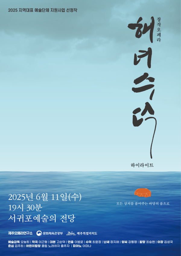 제주오페라연구소가 주최하고 문화체육관광부가 주관하며 제주도가 후원하는 창작오페라 ‘해녀수덕’의 하이라이트 공연이 오는 11일 서귀포예술의전당 대극장에서 열린다.