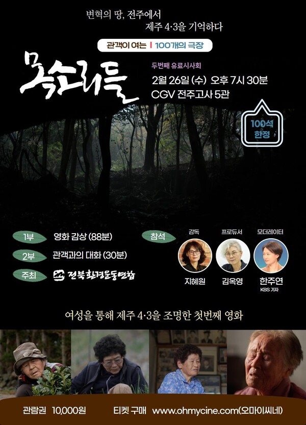 영화 상영 후에는 지혜원 감독과 김옥영 프로듀서가 참석해 영화 제작 과정과 제주 4·3사건의 의미에 대해 관객과 대화하는 시간을 가질 예정이다. 또한, KBS 전주방송총국 한주연 기자가 모더레이터로 참여해 다양한 담론을 나눈다.