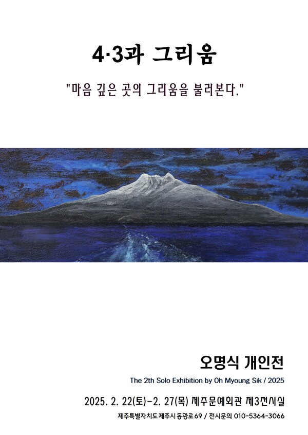 [제주도민일보 최지희 기자] 제주 4·3의 아픔을 예술로 풀어낸 오명식 작가의 두 번째 개인전 '4·3과 그리움, 마음 깊은 곳의 그리움을 불러본다'가 오는 22일부터 27일까지 제주문예회관 제3전시실에서 열린다.