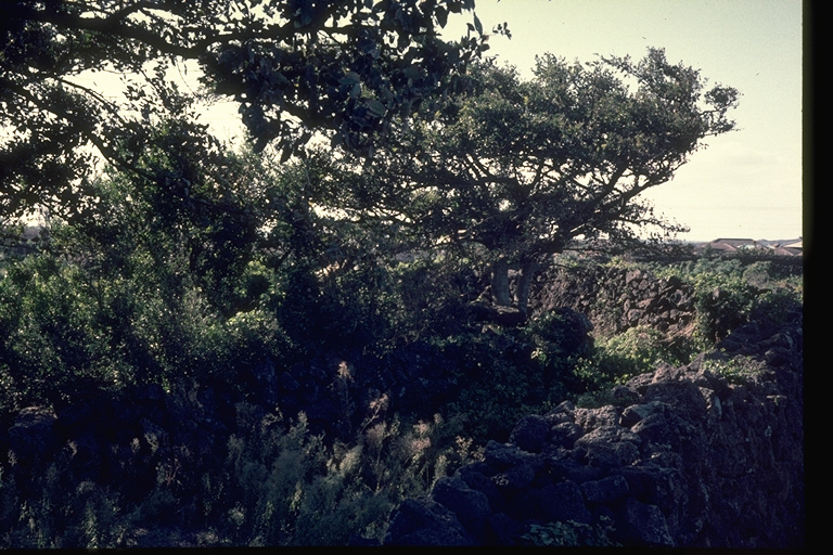 * 개요 : 협재 본향 웃가름 축일당 전경이다. 커다란 신목이 울창하게 솟아 있다. 전체적인 제장은 넓은 편이며 자연석을 둘러 돌담을 쌓았다. 제장 안에는 당의 제단을 둘러싸는 작은 규모의 돌담이 있다. 당 북쪽으로 궤 앞에 자연석을 이용해 평평하게 사각형으로 잘 다듬은 2단으로 쌓은 제단이 있다. 이 축일본향당은 협재리 마을주민들의 생산 ․ 물고 ․ 호적 ․ 장적을 관장하는 당으로 금악계 축일신 계보인 축일할망을 모시고 있다. 제일은 정월 명절, 8월 추석, 축일이다.
