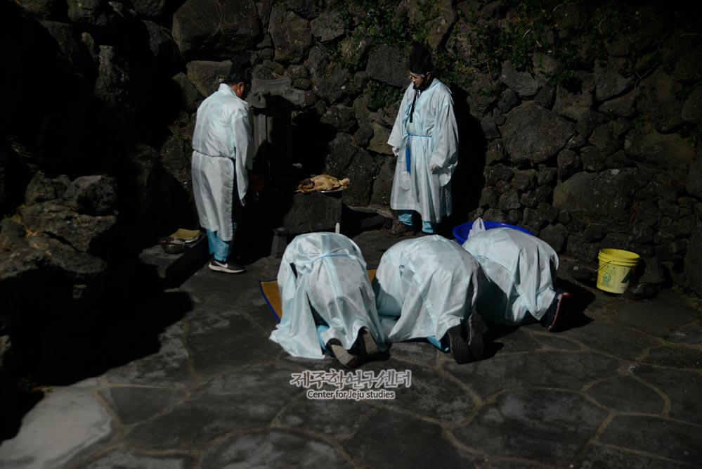 [장면설명] 금릉 본향 연딧가름 연감당 [공통설명] 리사제는 포제라고도 한다. 제주특별자치도 전역에 분포되어 있는 유교식 마을 제사의 일반적인 명칭이다. 정월에 희생으로 소‧돼지 등 가축을 잡아 하늘에 제사를 지내는 것으로 생산물의 풍요와 가족의 무병장수를 기원한다. 남자 유지들이 제관이 되어 유교적 의례 방식에 따라 진행하는 마을 제사이다.