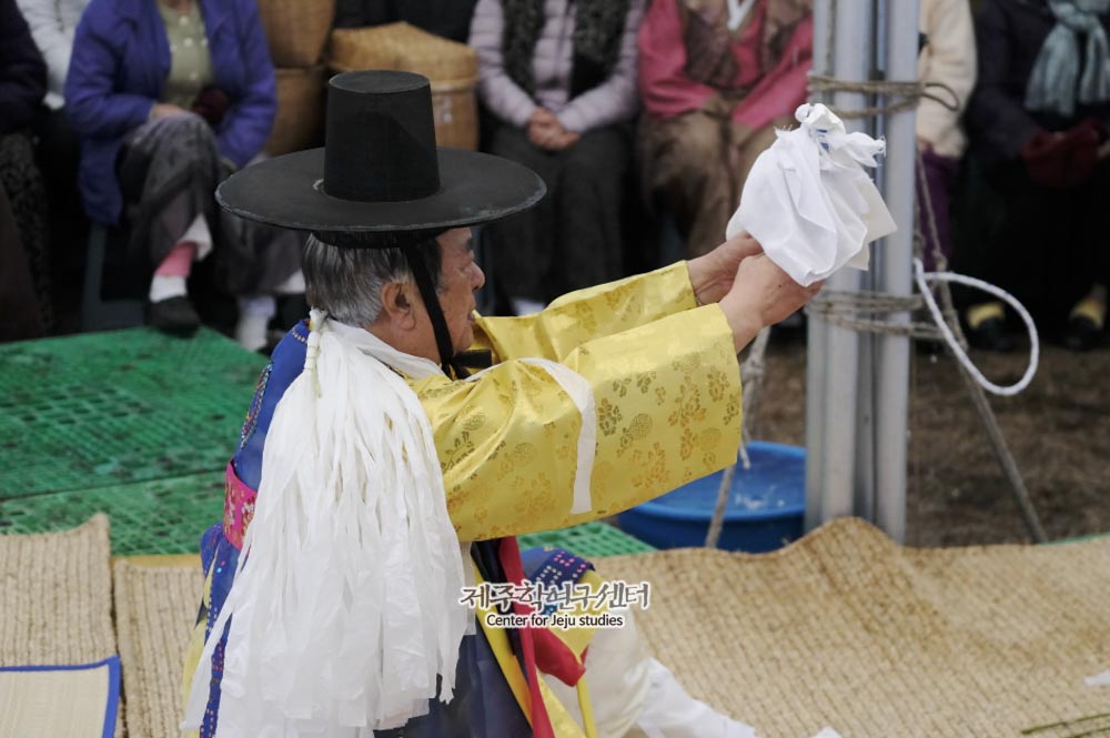 송당리 신과세제(2018년) 김윤수 심방이 초감제 중 신청궤 제차를 하는 모습
