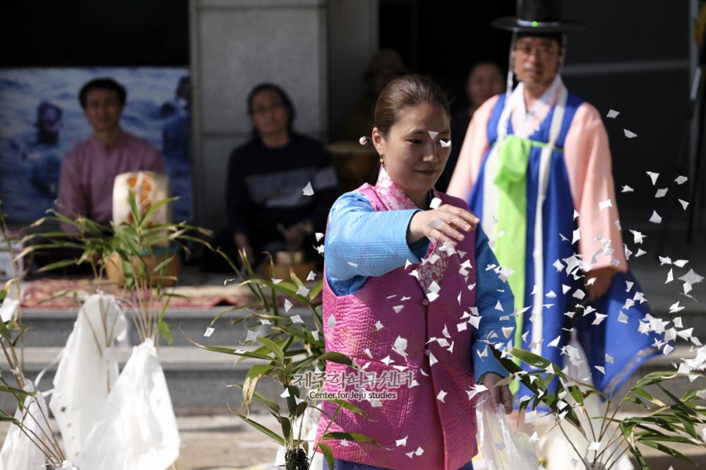 사계리 풍어제(2018년) 요왕맞이 중 요왕질침 제차를 하는 모습