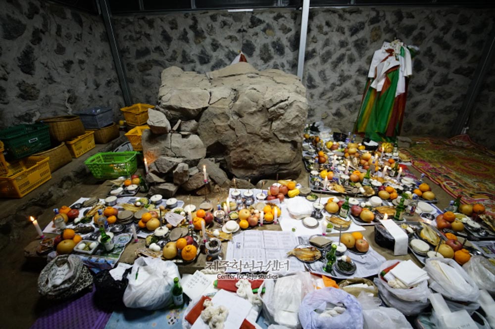 와산리 본향 당오름 불돗당에 제물을 진설한 모습이다.