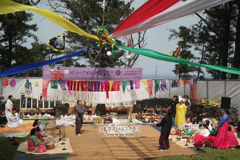 칠머리당 영등송별제(2018년) 고덕유 심방과 양승건 심방이 나까시리 놀림 제차를 하고 있는 모습