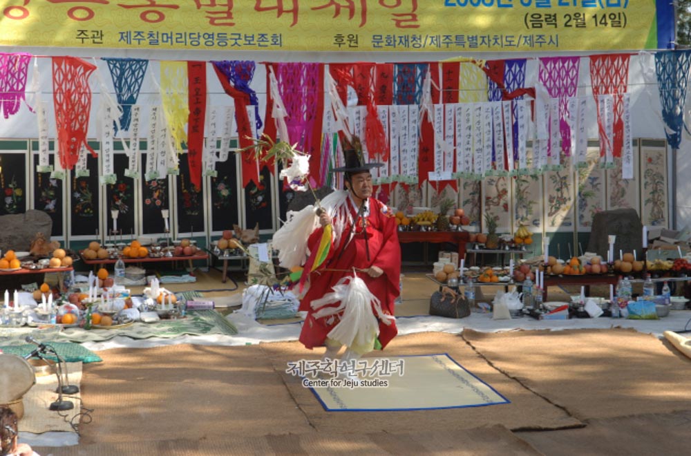 칠머리당 영등송별제(2008년) 김윤수 심방이 초감제 중 신청궤 제차를 하는 모습