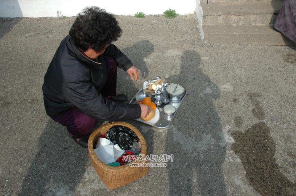 하도리 면수동 본향 여씨불도할망당 영등손맞이(2013년)마을 사람이 개별 의례를 할 제물을 준비하는 하는 모습