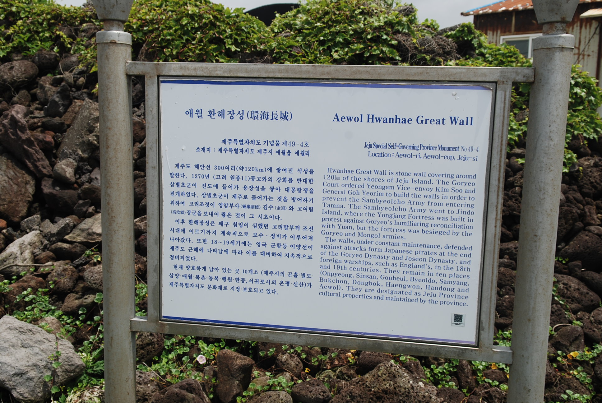 애월환해장성은 왜구등 적을 막기 위해 애월읍 해안가를 돌아가면서 단단히 쌓은 약360m의 환해장성이다. 왜적이나 적선들이 쳐들어왔을 때 쉽게 정박할 수 없도록 쌓아놓은 환해장성은 제주 지역의 지형 상 전도에 걸쳐 형성되어있었다. 지금은 거의 사라지고 없으며, 현재 총 5,120m에 이르는 곳이 제주도 지방기념물로 지정되어 있다. 애월읍에는 애월환해장성 외에도 고내리에 약 324m의 환해장성이 남아 있다.