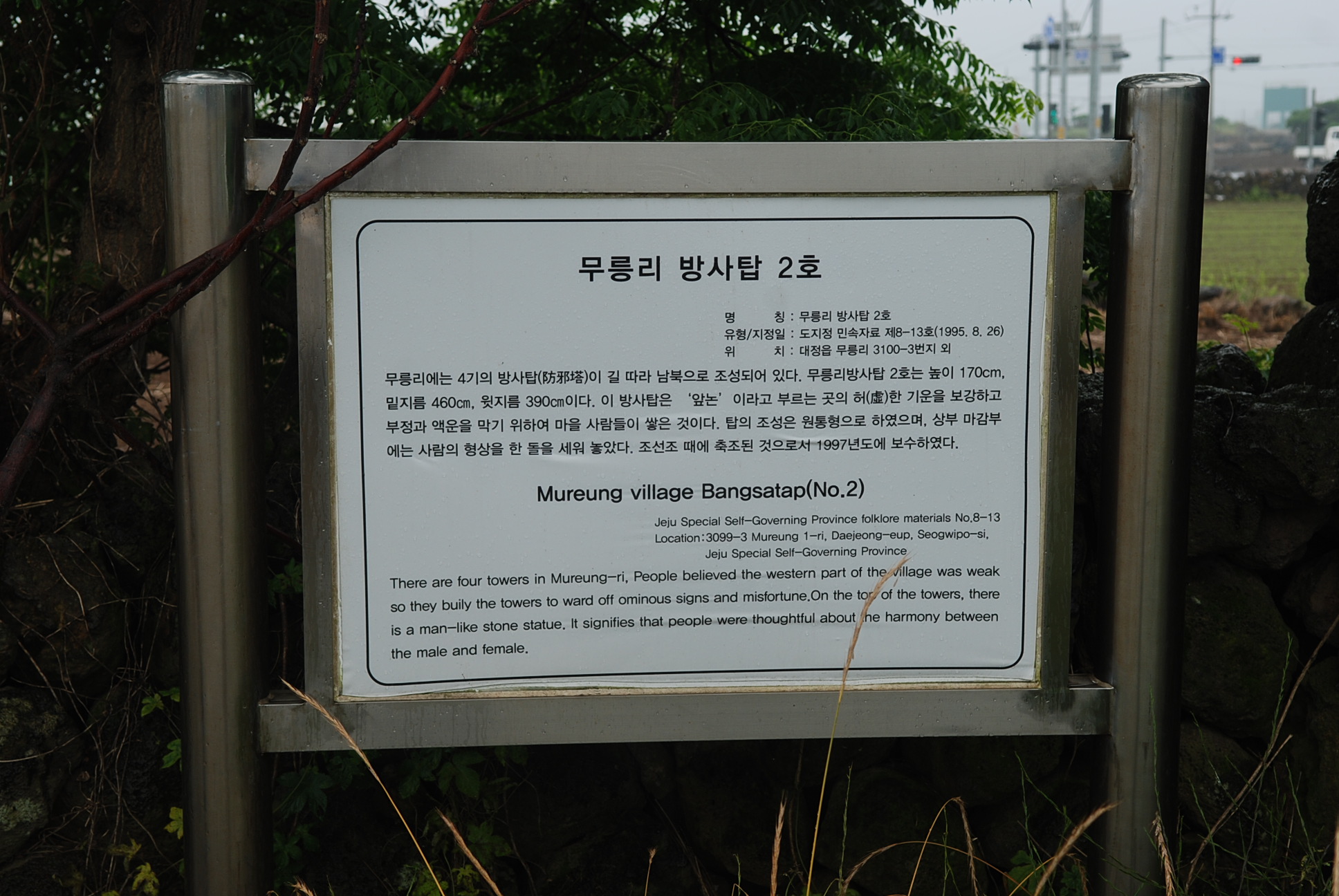 ․ 남쪽 평지에 위치한 것으로 평지에 쌓아졌다. 크기는 하단지름 460㎝, 상단지름 390㎝, 높이 170㎝이다. 현무암잡석을 이용해 허튼층막쌓기를 하였으며 속은 잡석 채움하였다.