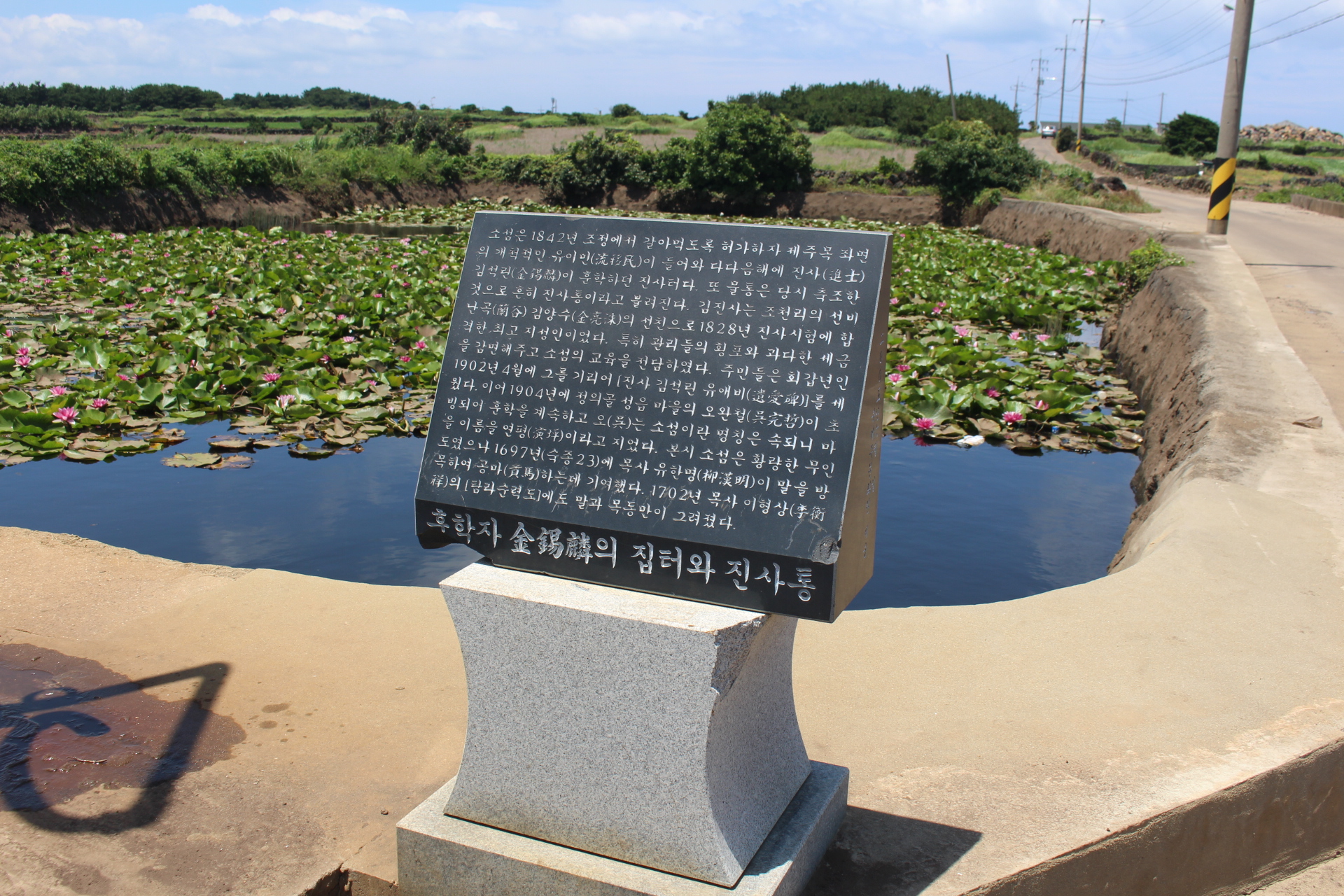 소섬은 1842년 조정에서 갈아먹도록 허가하자 제주목 좌면의 개척적인 유이민(流移民)이 들어와 다다음해에 진사(進士) 김석린(金錫麟)이 훈학하던 진사터다. 또 물통은 당시 축조한 것으로 흔히 진사통이라고 불려진다. 김진사는 조천리의 선비 난곡(蘭谷) 김양수(金亮洙)의 선친으로 1828년 진사시험에 합격한 최고 지성인이었다. 특히 관리들의 횡포와 과다한 세금을 감면해주고 소섬의 교육을 전담하였다. 주민들은 회갑년인 1902년 4월에 그를 기리어 [진사 김석린 유애비(遺愛碑)]를 세웠다. 이어 1904년에 정의골 성읍 마을의 오완철(吳完哲)이 초빙되어 훈학을 계속하고 오(吳)는 소섬이란 명칭은 속되니 마을 이름을 연평(演坪)이라고 지었다. 본시 소섬은 황량한 무인도였으나 1697년(숙종 23)에 목사 유한명(柳漢明)이 말을 방목하여 공마(貢馬)하는데 기여했다. 1702년 목사 이형상(李衡祥)의 [탐라순력도]에도 말과 목동만이 그려졌다.
