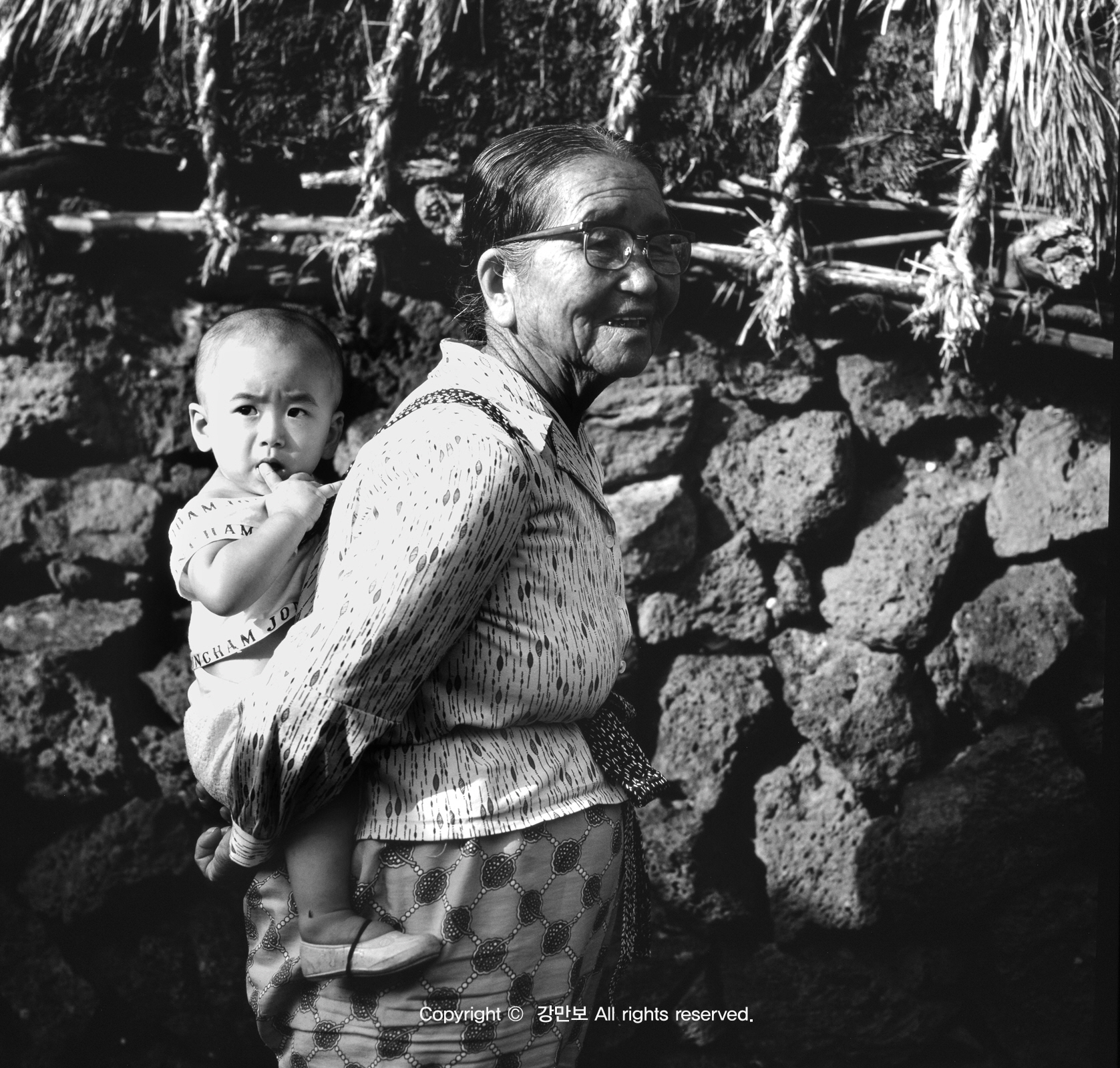 손자 보는 할머니의 모습이 다정하다. 나이가 들면 모든 일을 며느리에게 맡기고 손자를 보는 것은 행복한 일이다.
