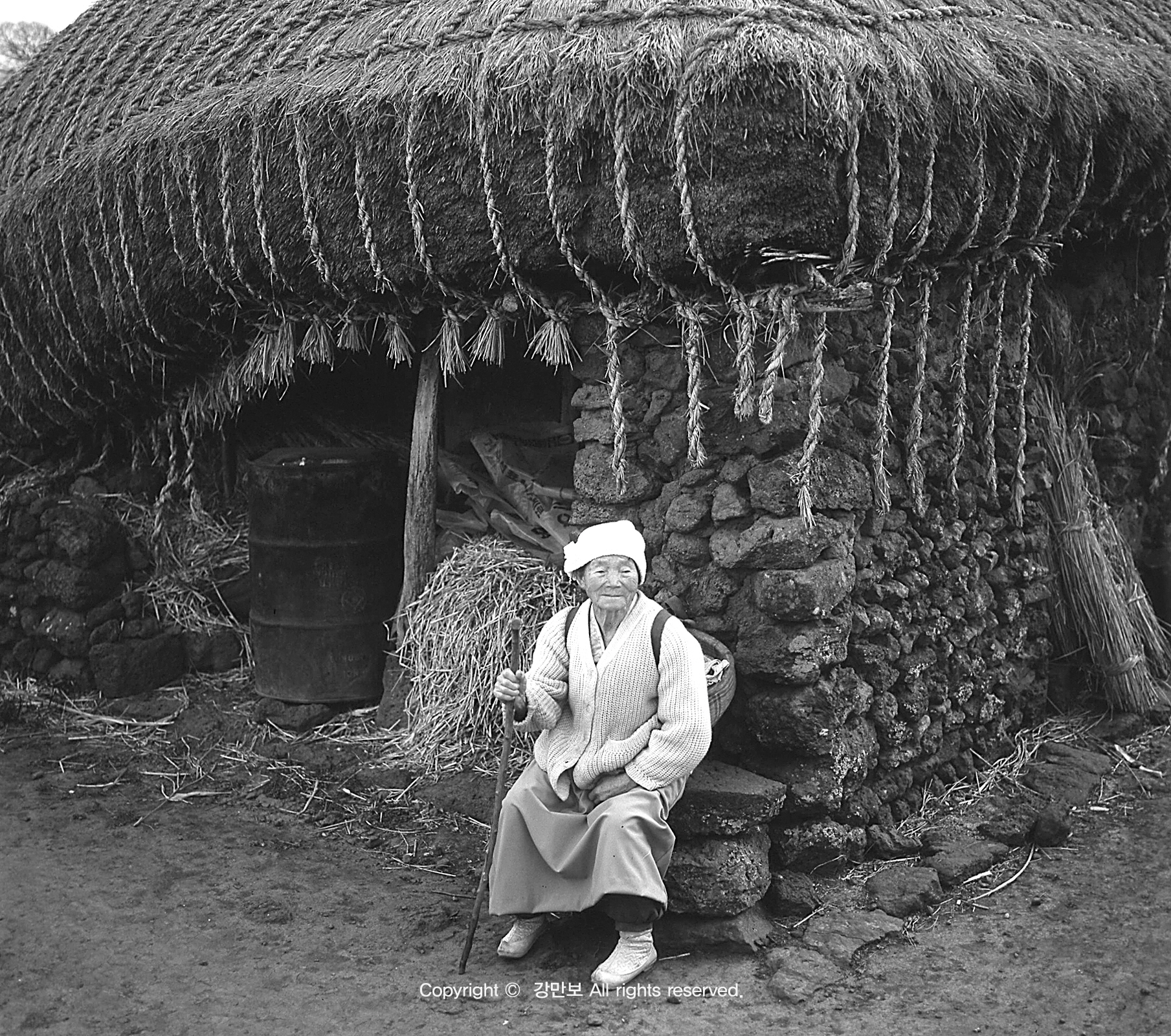 마실 가는 할머니가 이제는 용도가 폐기된 물팡에서 바구니를 내려놓고 한숨 쉬고 있다.