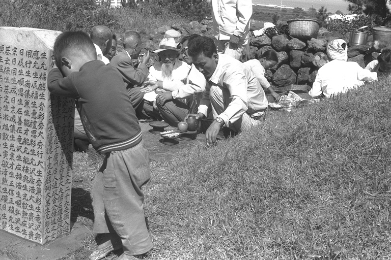 * 개요 : 1971년 추석 전에 양천허씨 문중의 사람들이 묘비를 건립하여 묘제를 행하고 있다. 허씨 문중묘는 소나무밭이 우거진 ‘서운당’이라는 도남동에 있었다. 중절모를 쓰고 흰 한복을 입거나 양복 차림의 장노년층 남자들이 모여 있다. 여자 분들이 차롱과 구덕을 이용해 제물을 담아 오고, 산담 위에 놓여 있는 양은들통과 양동이에는 갱(국)과 물을 담아 왔던 것으로 보인다. 어린 남자아이가 비석에 기대어 숨바꼭질하며 천진난만하게 놀고 있다. 이후 허씨 문중묘는 해안동으로 이전하였고, 현재 이곳은 주택과 아파트, 상가가 빽빽이 들어서서 도시화가 되었다.