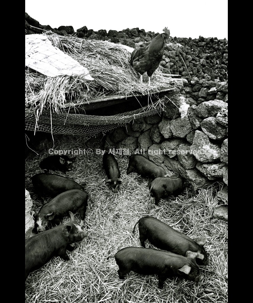 제주 돼지우리 모습이다. 돼지우리는 보릿짚을 깔고 새끼 흑돼지들이 모여 있는 공간이다.