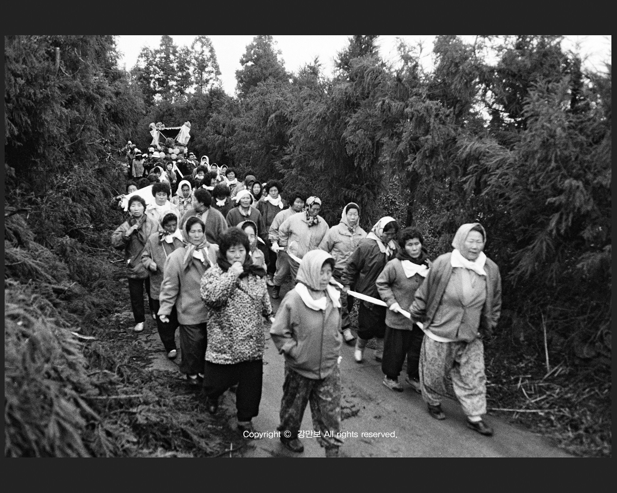 상여가 부락 밖을 나간 후 부터 행상소리를 한다. 상여행렬 구성을 보면 명전- 혼백상-만서-앞굽은 가지(선가지)- 너월 쓴 여상제-설베-상여-뒷굽은 가지(키 잡이)-남상제 이다. 혼백상을 들은 여상제는 절대 뒤를 돌아보지 않아야 하는 금기가 있다.