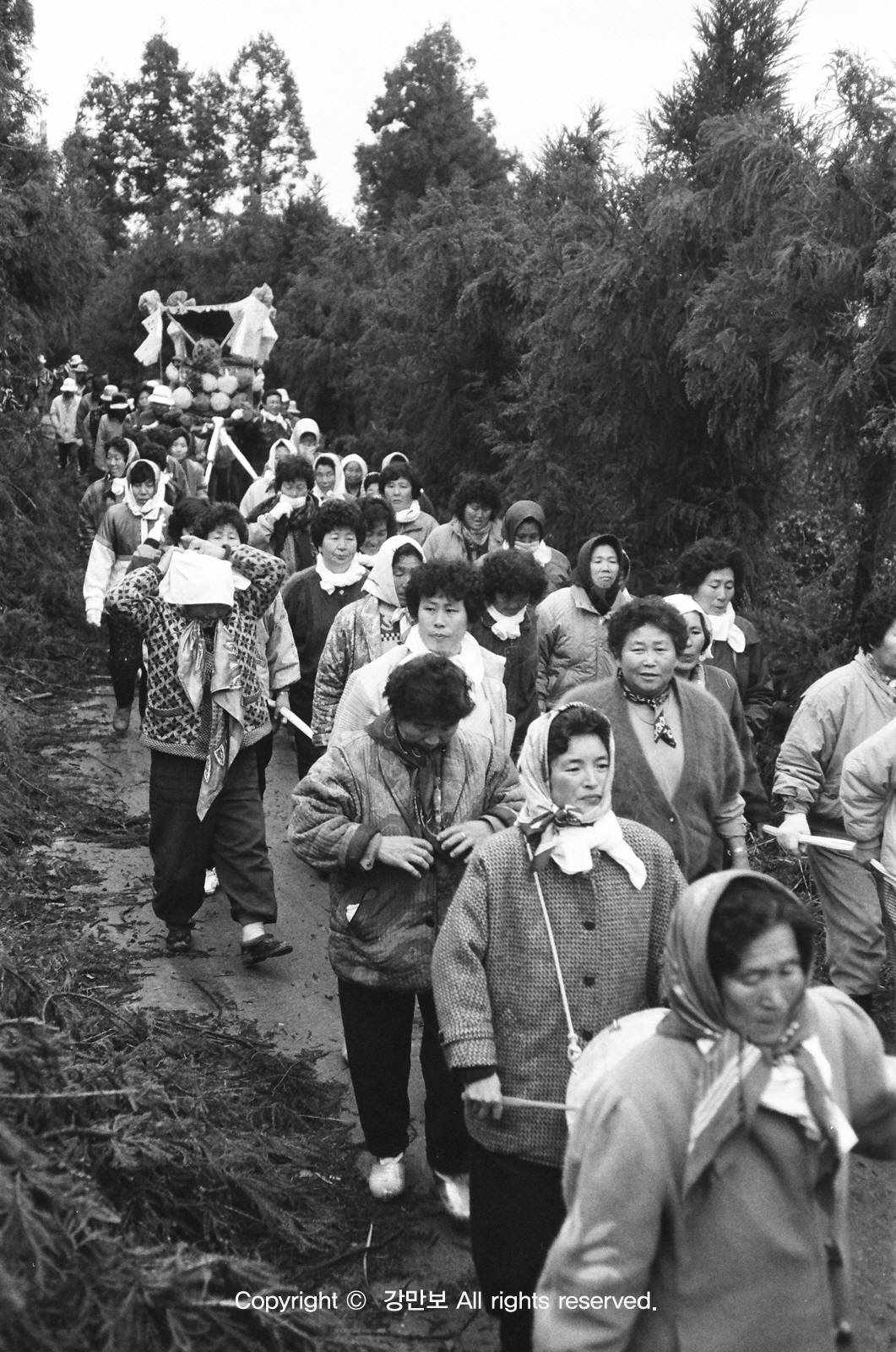 초상화를 든 상주와 상여 맨 앞쪽에서 끌어낸 설베(20미터의 길이의 명주 한필)를 맨 20~30명의 동네 친척 아낙들이 따르고, 이어서 복친들이 따른다.