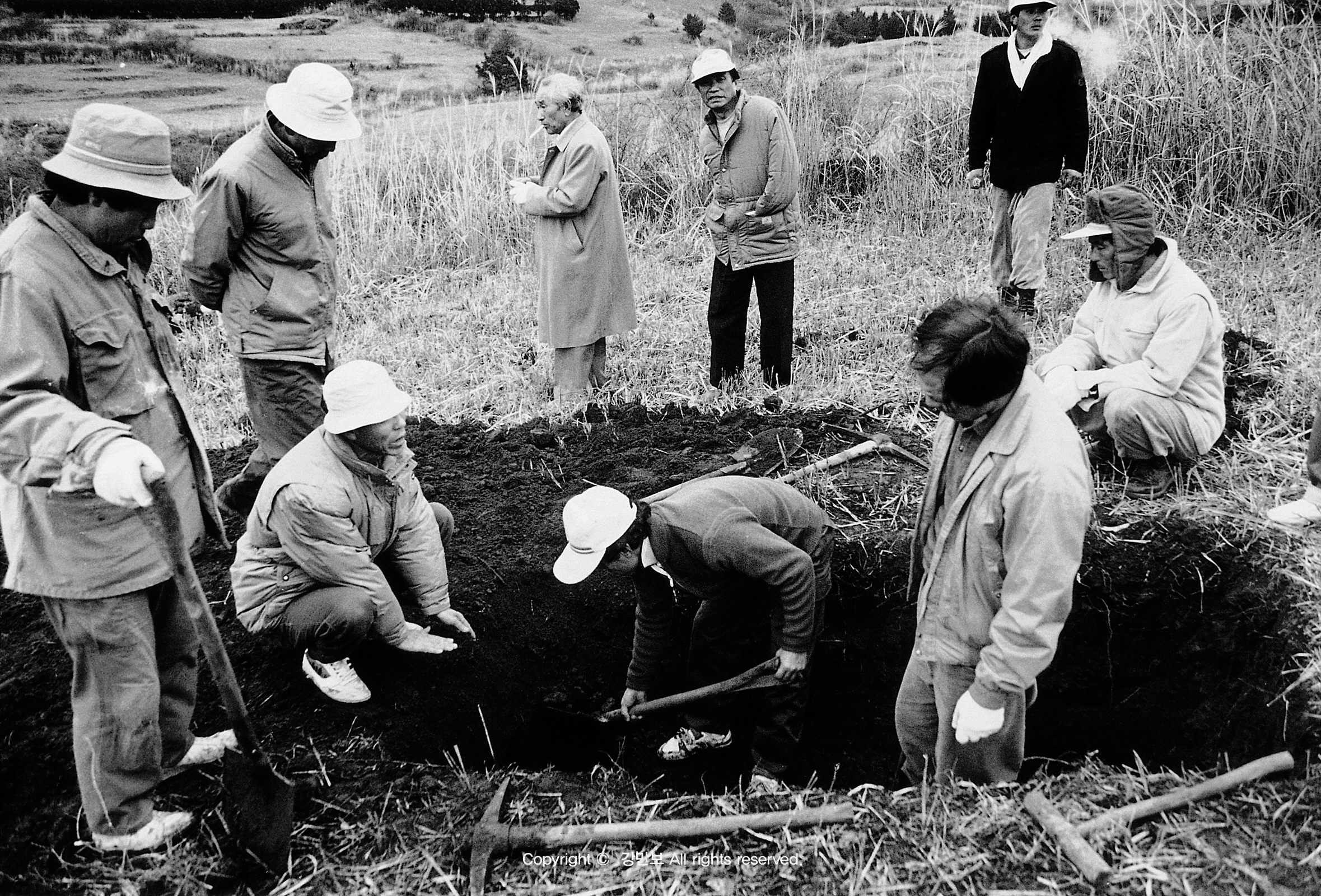 사람이 죽어 장례를 치를 때는 우선 몇사람이 일찍 미리 장해 준 산터자리에 가서  시신이 든 관(곽)이 들어갈 자리 관자리(광)를 파고 있다.