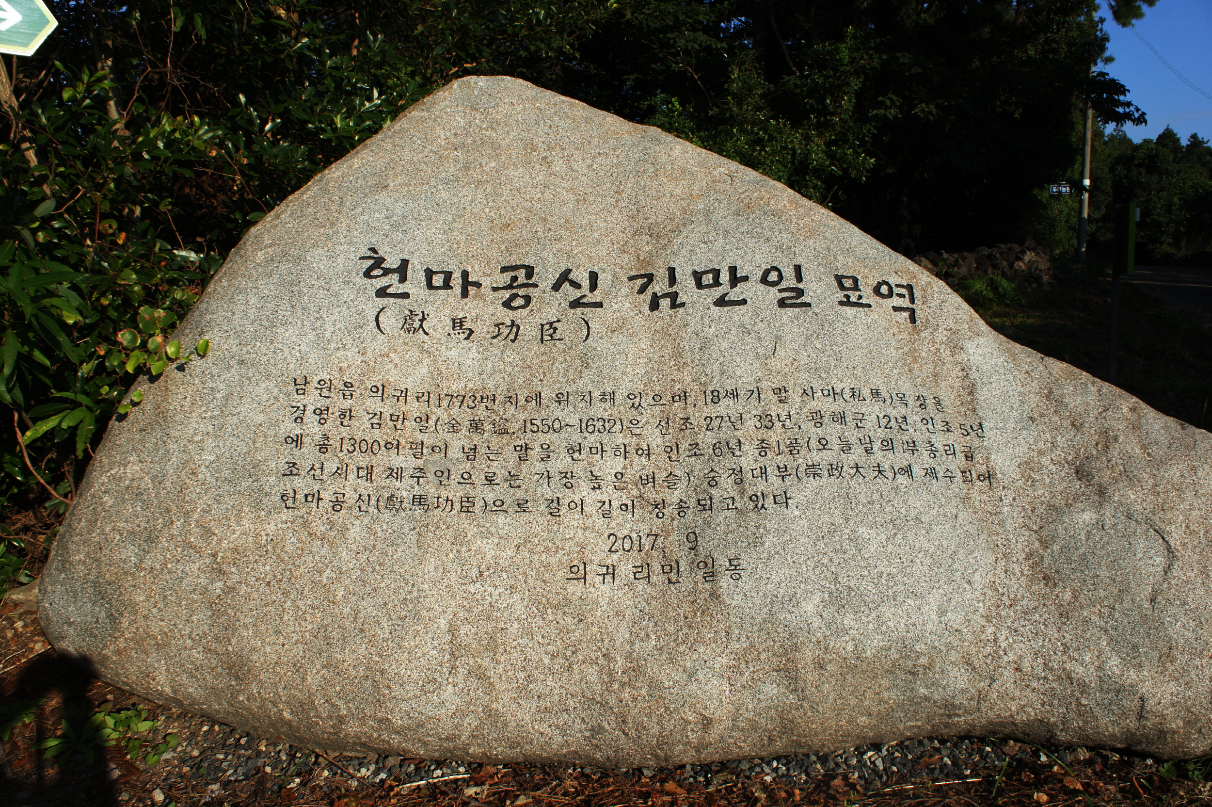 김만일 전설과 표석