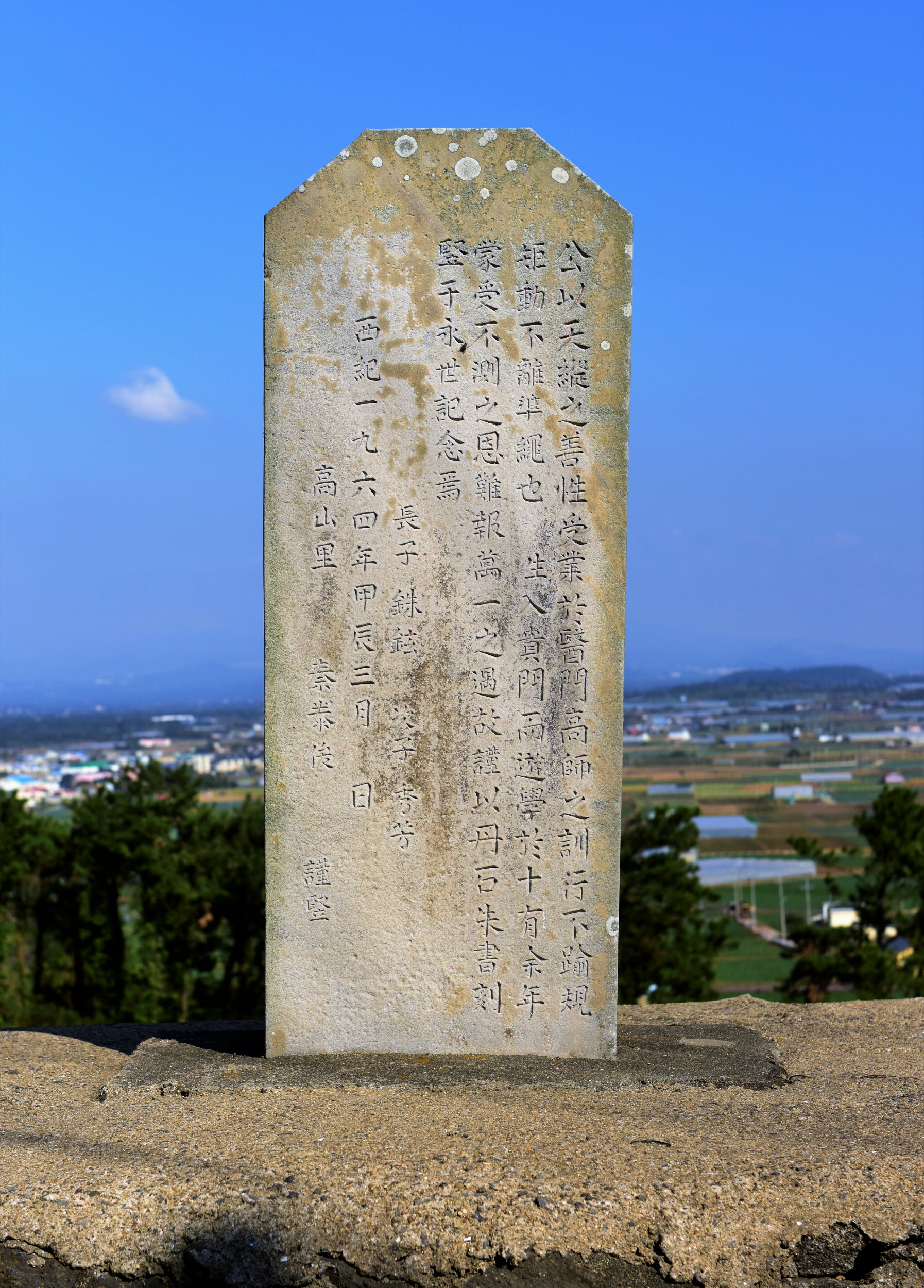 한경면 고산리에서 의원을 개설하여 어려운 이들을 치료해 준 좌임관 기념비 뒷면