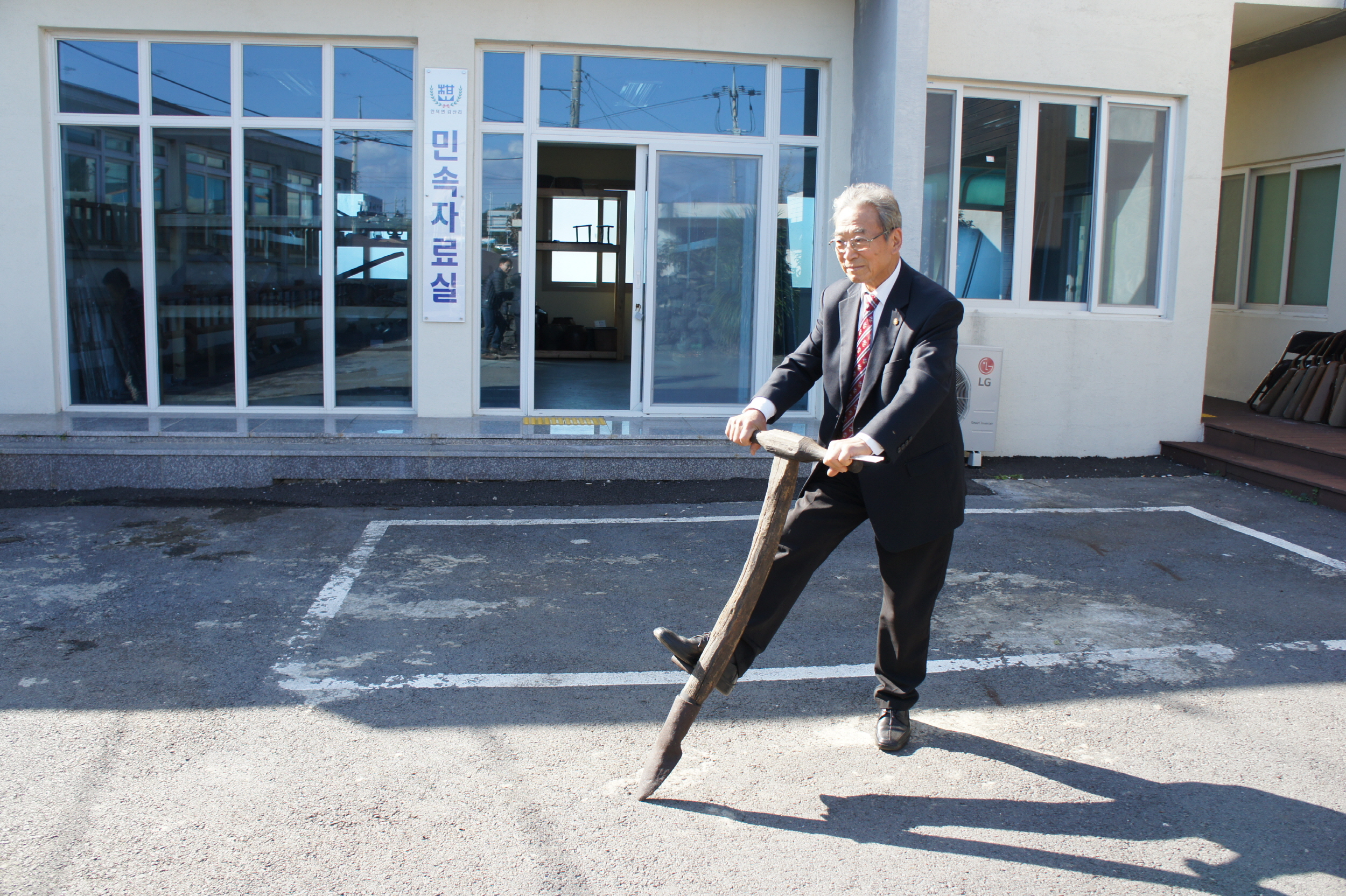 외 따비를 설명해주는 김유헌(1939년생)감산리 경로당 회장