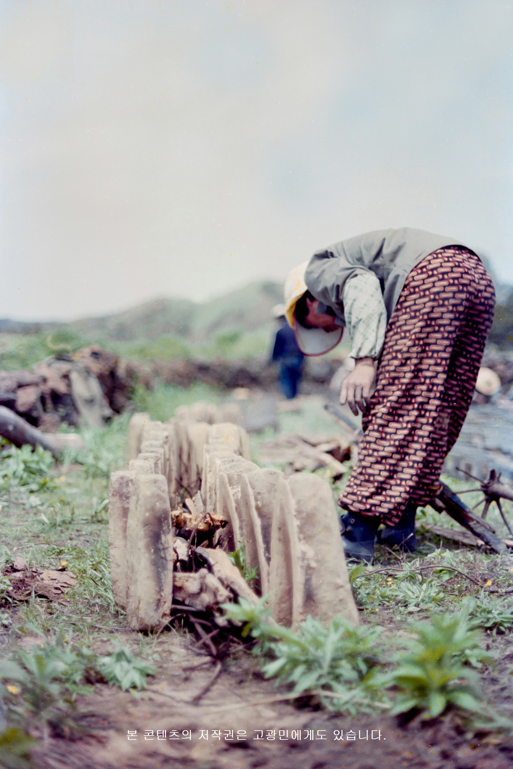 고광민 민속 사진 - 마주 세운 보습뎅이 사이 장작 놓기