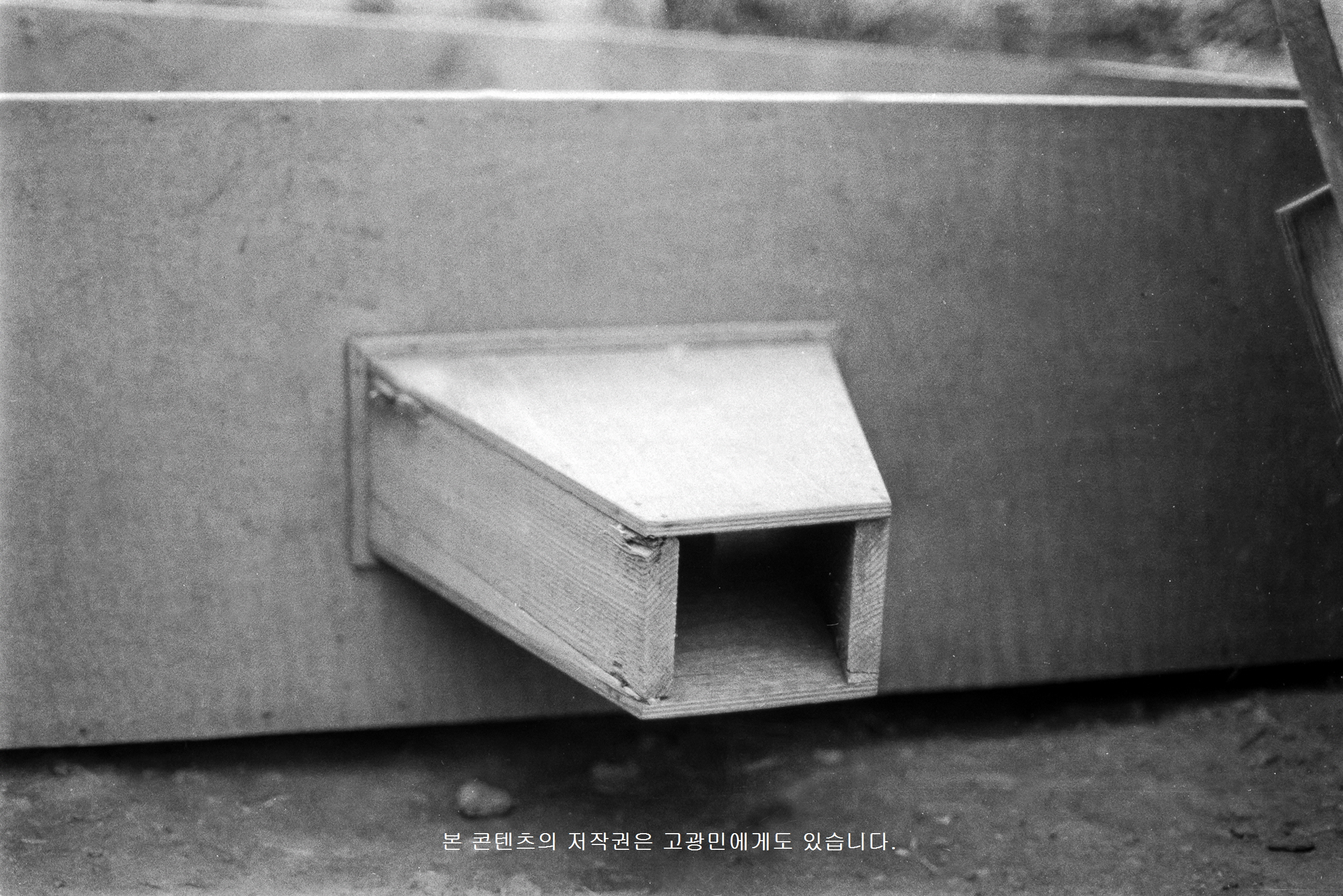 *개요 : ‘골풀무(땅바닥에 장방형(長方形)의 골을 파서 중간에 굴대를 가로 박고 그 위에 골에 꼭 맞는 널빤지를 걸쳐 놓은 것으로, 널빤지의 두 끝을 두 발로 번갈아 가며 디뎌서 바람을 일으키는 도구)’의 외부 일부 모습이다.